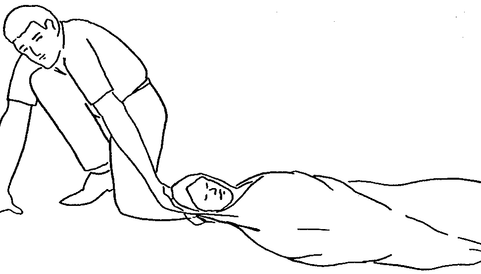 This method is to be used to move one person with a severe enough injury to where they should not be carried or lifted by 1 person. Lay the victim on a blanket and carefully pull the victim head first across the ground, making sure to not bump the victim’s head. If no blanket is available the victim can be pulled by their upper body clothing.