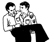 Assist the victim to a safe and secure place by carrying them in one of the following ways if they cannot stand or walk but there are no signs of extreme injuries such as damage to the spine