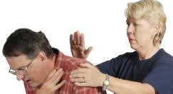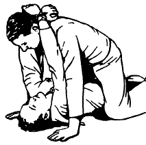 Treating airway obstruction in a conscious victim.