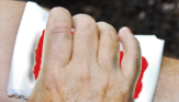 If a victim is cut, apply pressure on the cut until the bleeding stops. Remove any jewelry to prevent blockage of blood flow and clean the wound with warm soap and water. Use antibiotic medicine along with a sterile bandage and put ice on the hand while elevating it to keep swelling down.